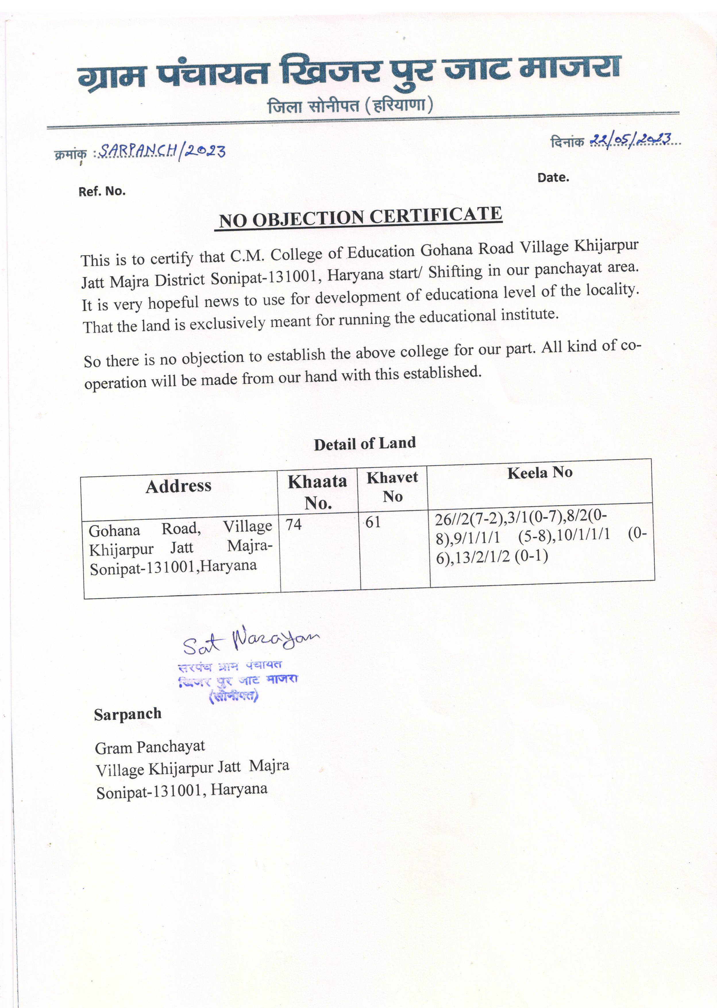 GOHANA ROAD KHIJARPUR JAT MAJRA-SONIPAT-131001 Sonipat